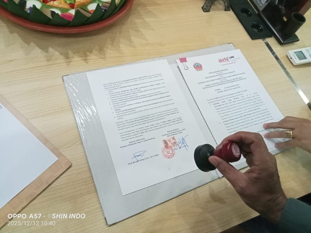 Penanda tanganan kontrak kerja sama pelatihan Bahasa jepang dan pengembangan kompetensi sumber daya manusia, antara politeknik negeri ujung pandang dengan lpk aichi nihongo center.